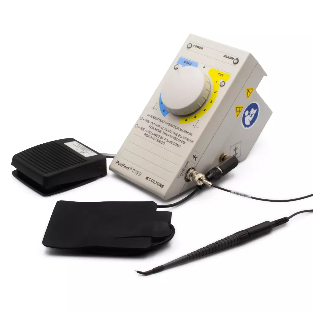 PerFect TCS II es un sistema de electrocirugía de alta frecuencia que ayuda a tratar el tejido blando con mayor eficacia y precisión y menos sangrado que el bisturí odontológico tradicional.